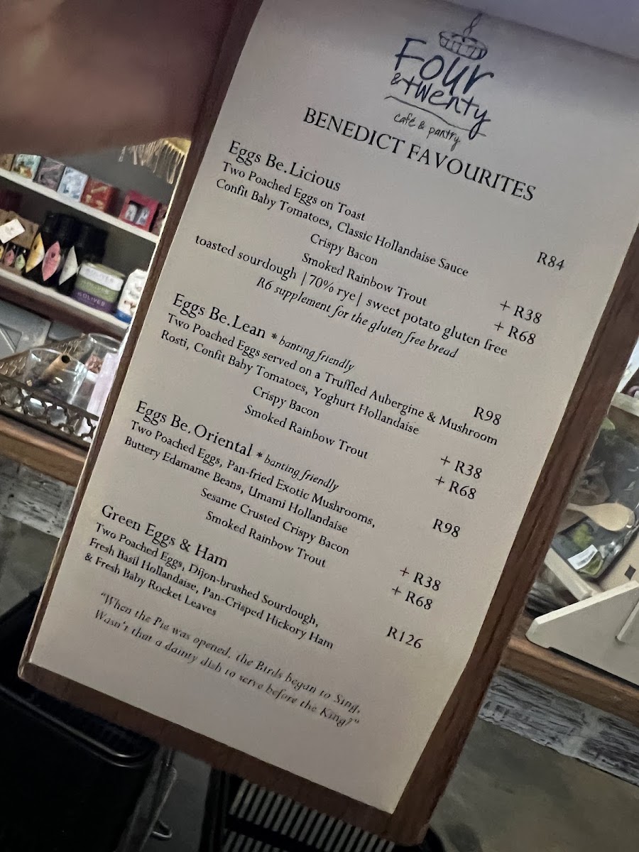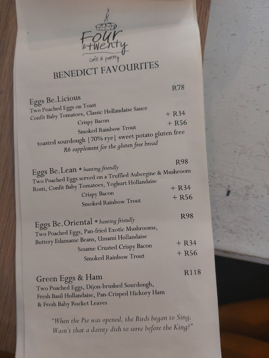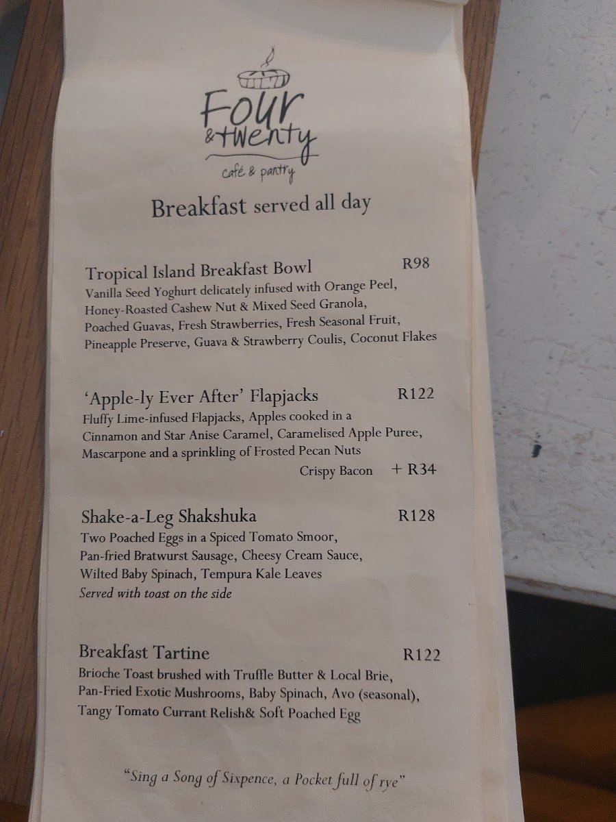 Welcome to Four & Twenty Cafe, a charming spot nestled in Wynberg, Cape Town. Known for its delightful atmosphere and exceptional service, this cafe offers a menu that truly delights. Patrons rave about their divine coffee and freshly baked muffins, perfect for both dine-in and takeaway options.
